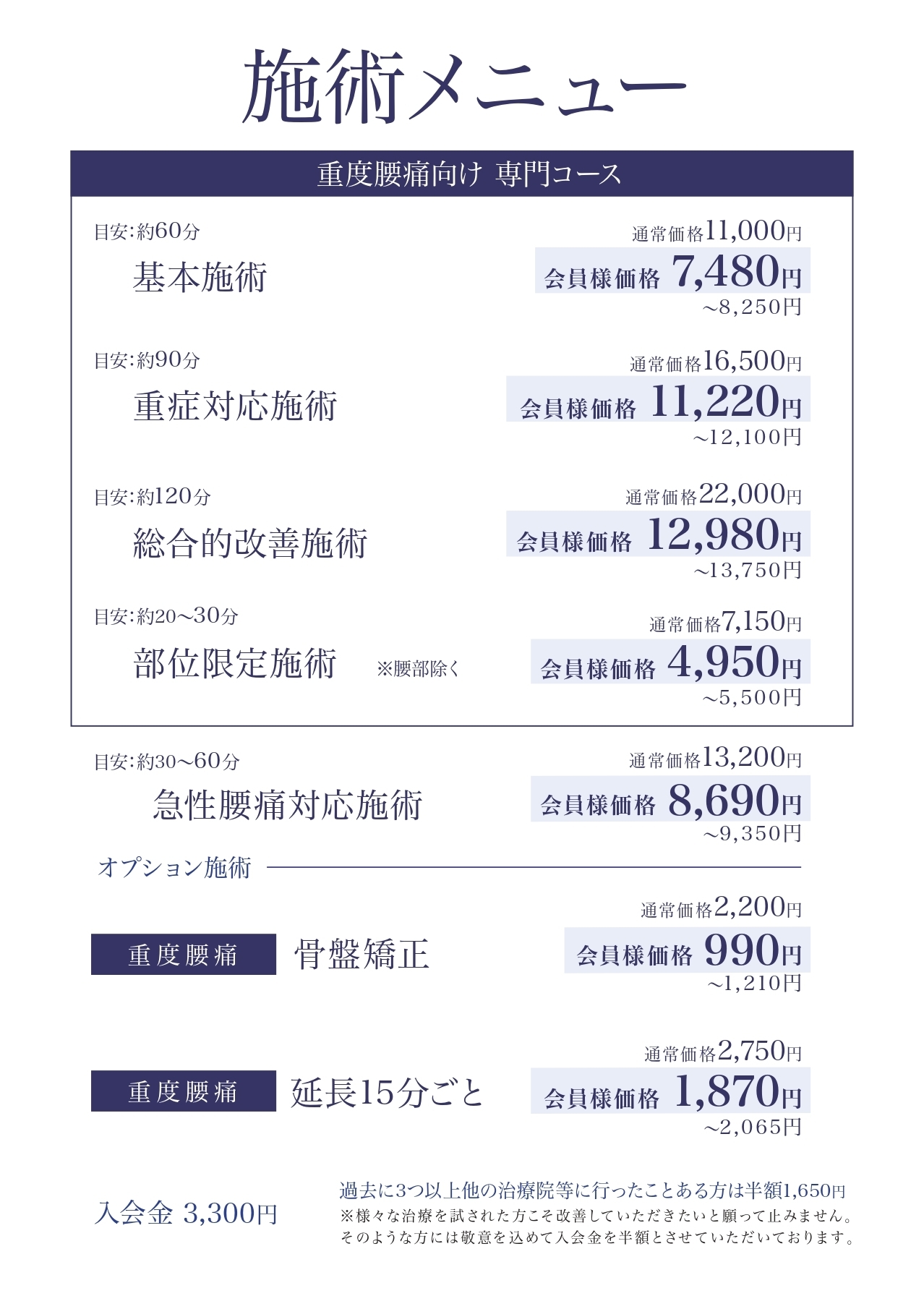 当院の1回あたりの施術料は